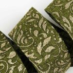 Gold Lurex Leaf Scroll Hessian Ribbon – Green 38mm