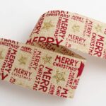Merry Christmas Printed Hessian Ribbon 38mm – Natural