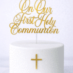 On Our First Holy Communion with Cross Cake Topper