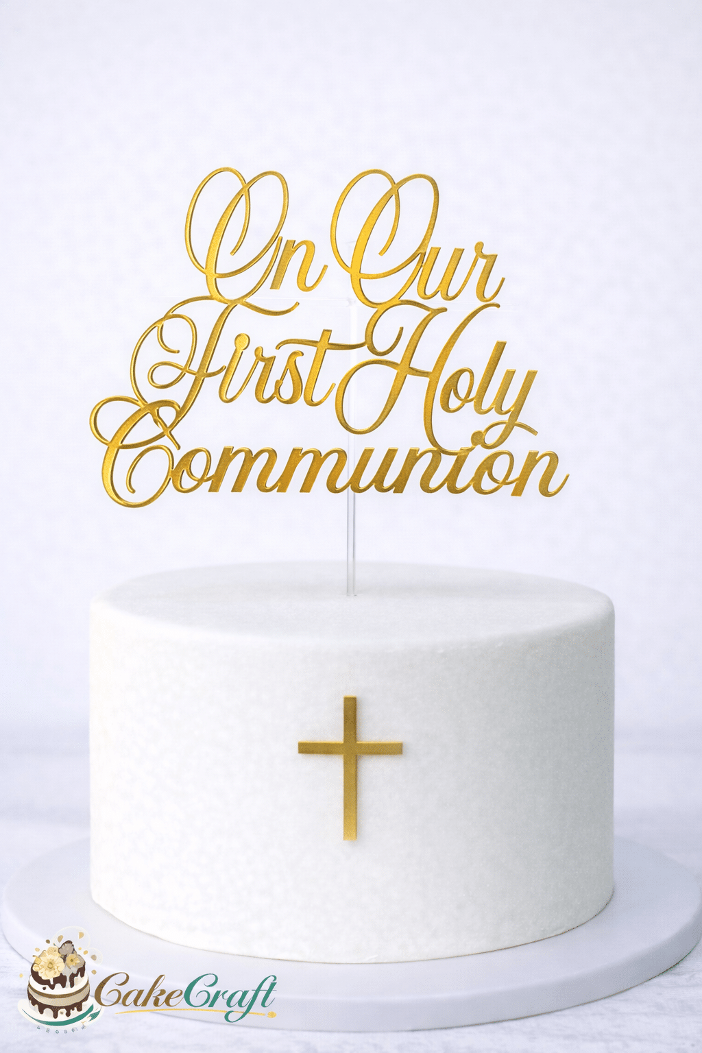 On Our First Holy Communion with Cross Cake Topper