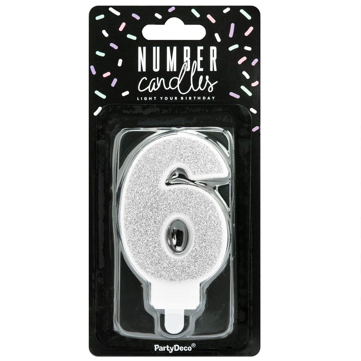 PartyDeco Birthday Candle Silver – Number 6
