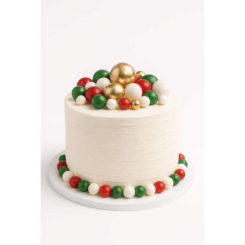 -8 balls of 2 cm. (2 red, 2 green, 2 white, and 2 gold).